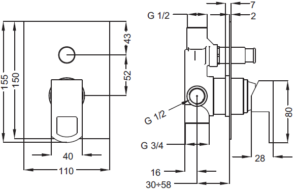 Тип подводки: внутренний (скрытый) монтаж 1/2"