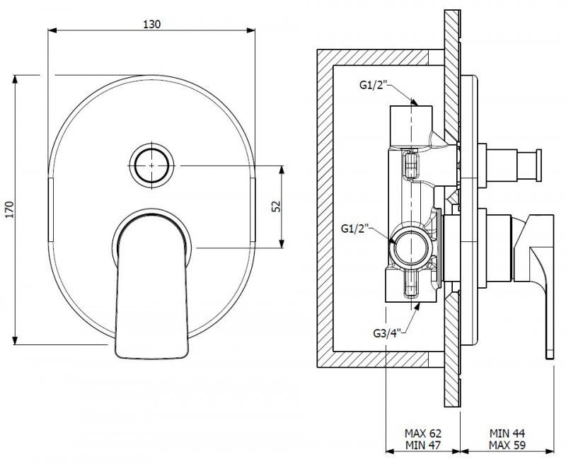 Тип подводки: внутренний (скрытый) монтаж 1/2"