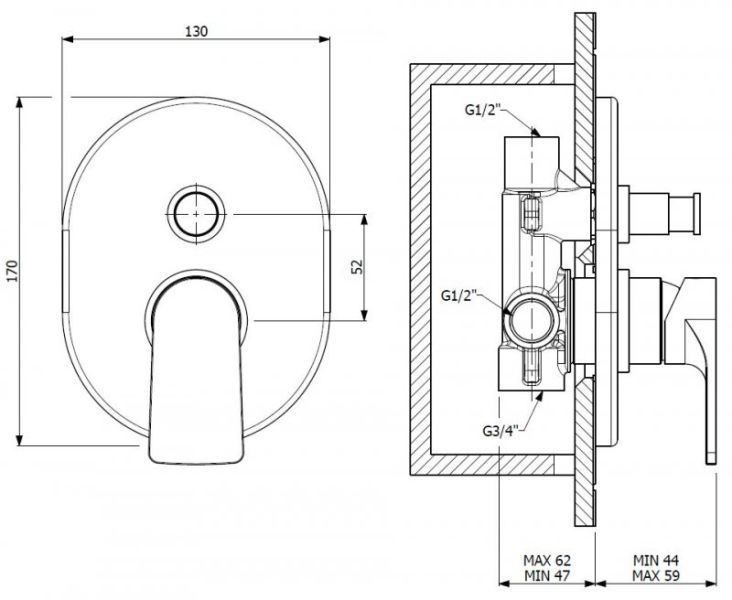 Встраиваемый однорычажный смеситель для душа с переключателем на 2 выхода, хром Cezares LAGOS-VDIM-01