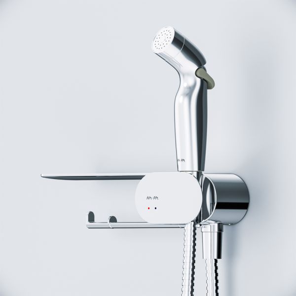 Самый широкий спектр возможностей с инновационным многофункциональным смесителем с гигиеническим душем от АМ.РМ! Смеситель оснащен прогрессивным картриджем, движение которого происходит в одной плоскости, делая управление максимально комфортным.Гигиенический душ зафиксирован непосредственно в самом смесителе, что экономит пространство и выглядит лаконично. Чтобы включить смеситель, достаньте гигиеническую лейку и поворотом ее держателя включите устройство. При нажатии на специальную кнопку на самой лейке начинается подача воды.Весь продукт представляет собой удобную полочку, на которой можно разместить все, что необходимо вам под рукой. На интегрированном держателе можно размещать туалетную бумагу, а на крючке - полотенце.Встроенный ограничитель температуры позволит избежать ожога.Совмещение рукоятки и держателя для гигиенического душа минимизирует риск забыть перекрыть воду в смесителе.
