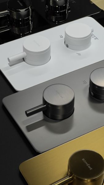 Новый встраиваемый смеситель для душа с термостатом Boheme CELL THERMO. Бокс для комфортного монтажа в стену. Термостат от мирового лидера, французского производителя Vernet. Версия на 2 выхода(верхний душ и ручная лейка) и версия на 3 выхода(верхний душ, ручная лейка и излив на выбор арт.625 и арт. 625/2). Идеально дополняется душевым набором Boheme CELL арт.427 с 2-х режимной верхней лейкой. 8 цветов в наличии.Смеситель для душа Boheme Cell 134-3-MW, термостатический, цвет белый матовыйХарактеристики: