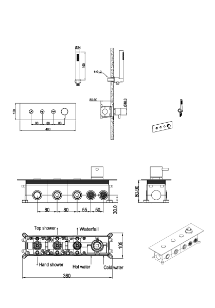 Встраиваемый смеситель для душа Boheme Fusion 130-SYS-G с ручным душем золото