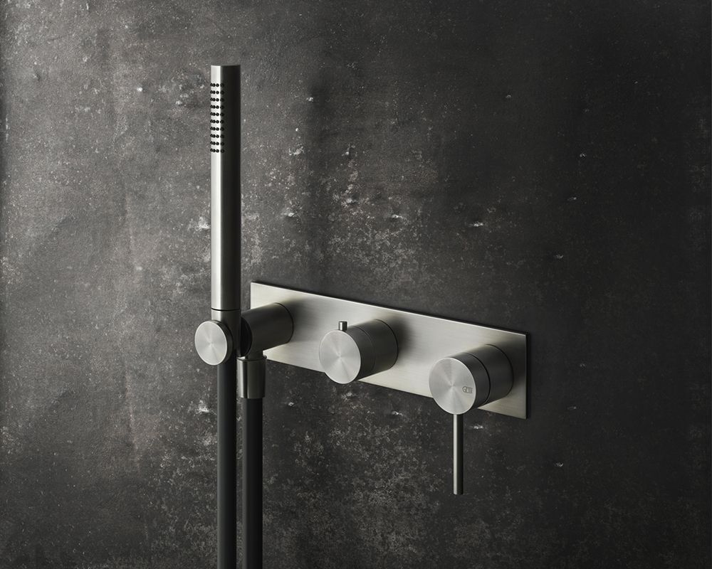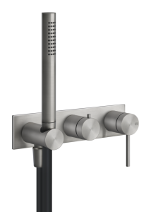 Модель рассчитана на управление двумя потоками воды, что позволяет легко переключаться между верхним душем и ручной лейкой или другими водными элементами. Внешняя часть изготовлена из высококачественных материалов с покрытием Steel Brushed, которое устойчиво к механическим повреждениям, коррозии и воздействию воды. Надёжная конструкция гарантирует долговечность и сохранение первоначального вида в течение длительного времени.