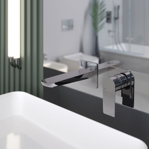 Раздельный смеситель из стены, с удобной поворотной ручкой для регулировки температуры выходящей воды. Выполнен в современном стиле, Имеет плоскую, квадратную форму, благодаря чему, максимально удобен в эксплуатации, и имеет удобную эргономику. Встраиваемая система