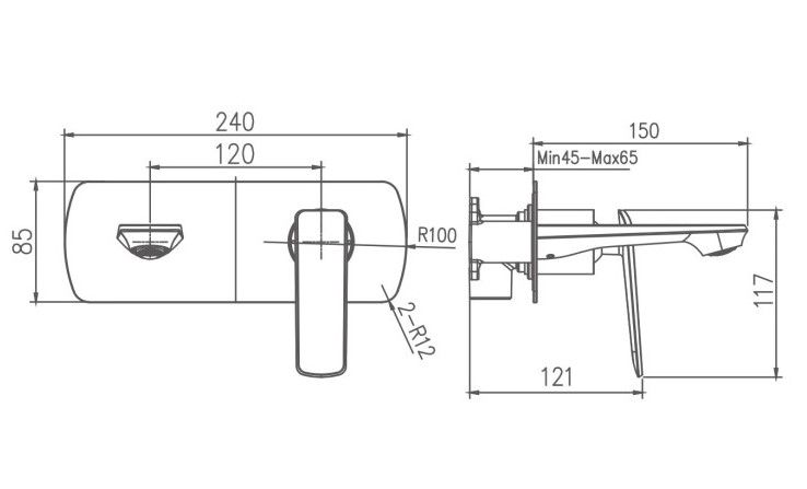 Настенный смеситель для раковины Haiba.Керамический картридж 35 мм.Изготовлен из латуни.Максимальная глубина монтажа 65 мм.