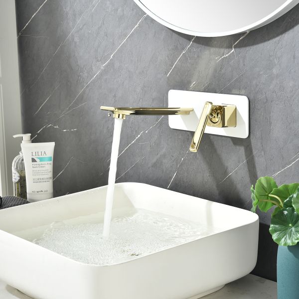 Встраиваемый смеситель для раковины Lemark Mista LM6426WG с донным клапаном белый/золото купить