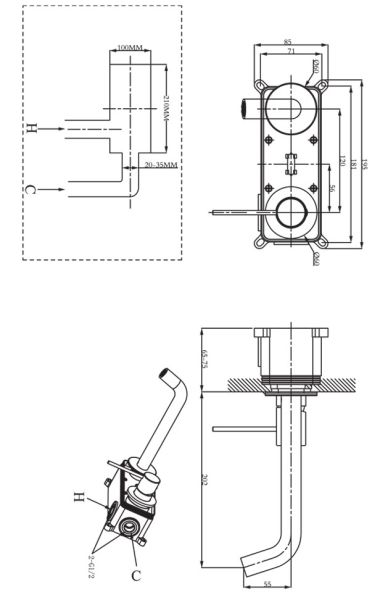 Встраиваемый смеситель для раковины Raiber Graceful RPB-004 чёрный матовый