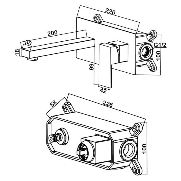 Cмеситель Swedbe Platta для раковины встраиваемый. Полный комплект установки (комплект скрытого монтажа и наружная часть смесителя). Керамический картридж, аэратор.