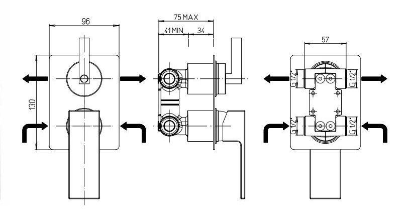 - Встраиваемый монтаж скрывает все соединения и оставляет на виду только рычаг управления, экономя пространство.