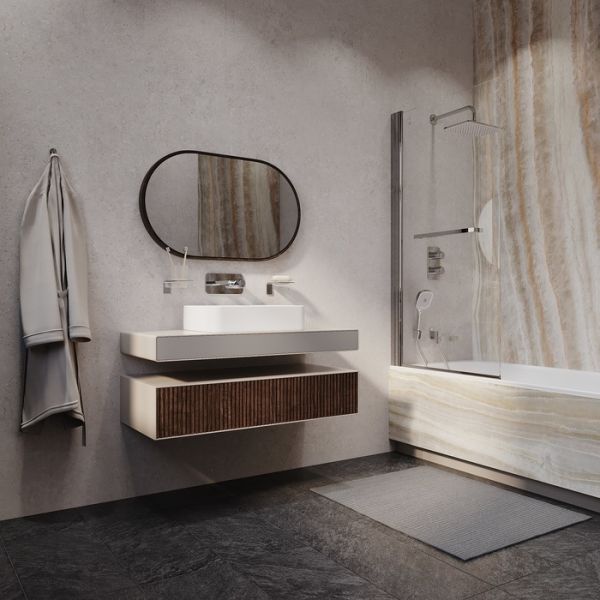 Встраиваемый смеситель Slide для ванны с инновационным кнопочным управлением Push Control – комбинация элегантного дизайна и современных технологий и функций, которые делают пребывание в ванной максимально комфортным и приятным. Две ручки-кнопки обеспечивают полный контроль над управлением всеми функциями смесителя: • Нижняя включает-выключает смеситель нажатием на кнопку и регулирует температуру воды при повороте вправо-влево.
