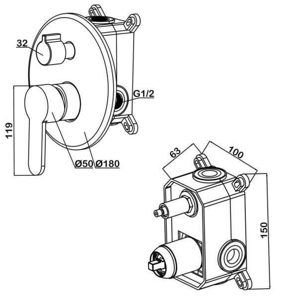 Смеситель Swedbe Platta 5518Cмеситель встраиваемый с подключением на 2 выхода. Полный комплект установки (комплект скрытого монтажа и наружная часть смесителя). Керамический картридж Sedal. Керамический дивертор. Смеситель изготовлен из гигиенически стабильной латуни с высоким содержанием меди.
