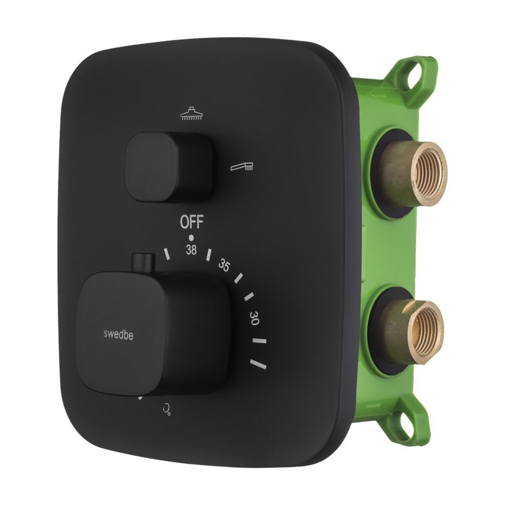 Смеситель для душа Swedbe Platta 9032B с термостатом и подключением на 3 выхода.Характеристики:Цвет: черный.