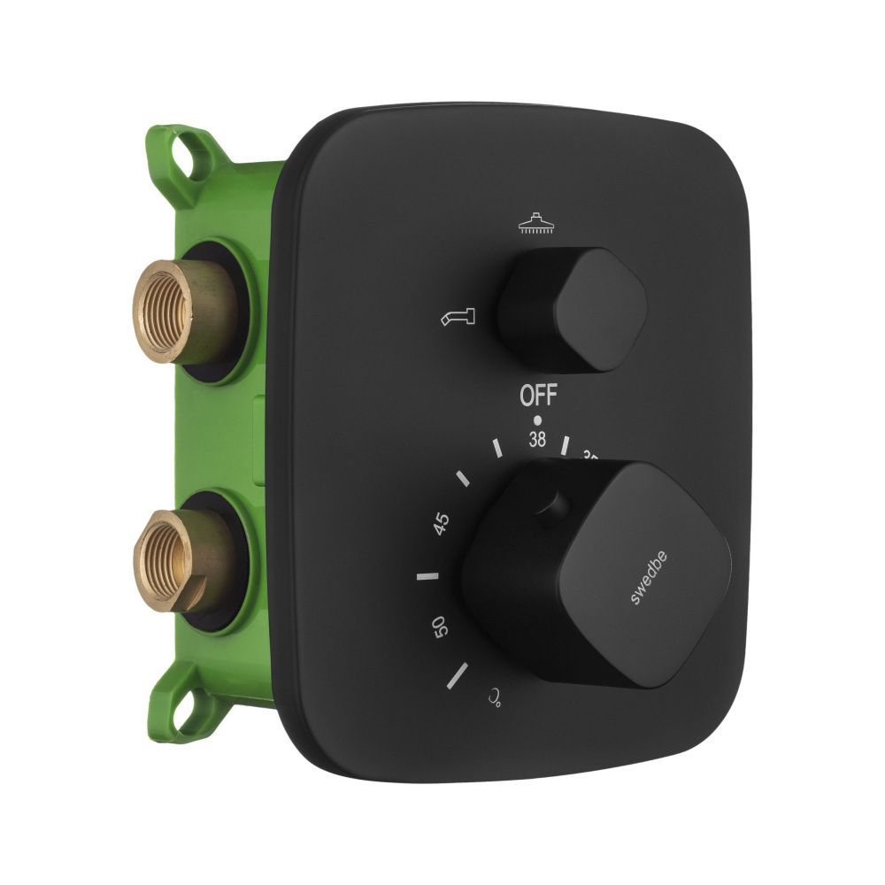 Встраиваемый смеситель Swedbe Platta 9032B термостатический подключение на три выхода чёрный