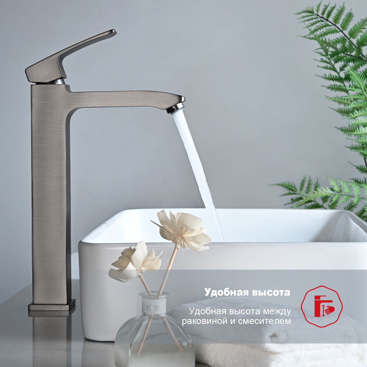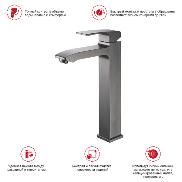 Высокий смеситель для раковины Raglo R01.15.09 графит купить