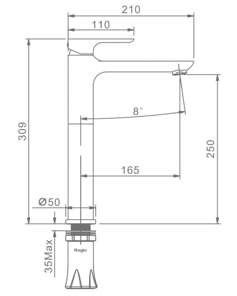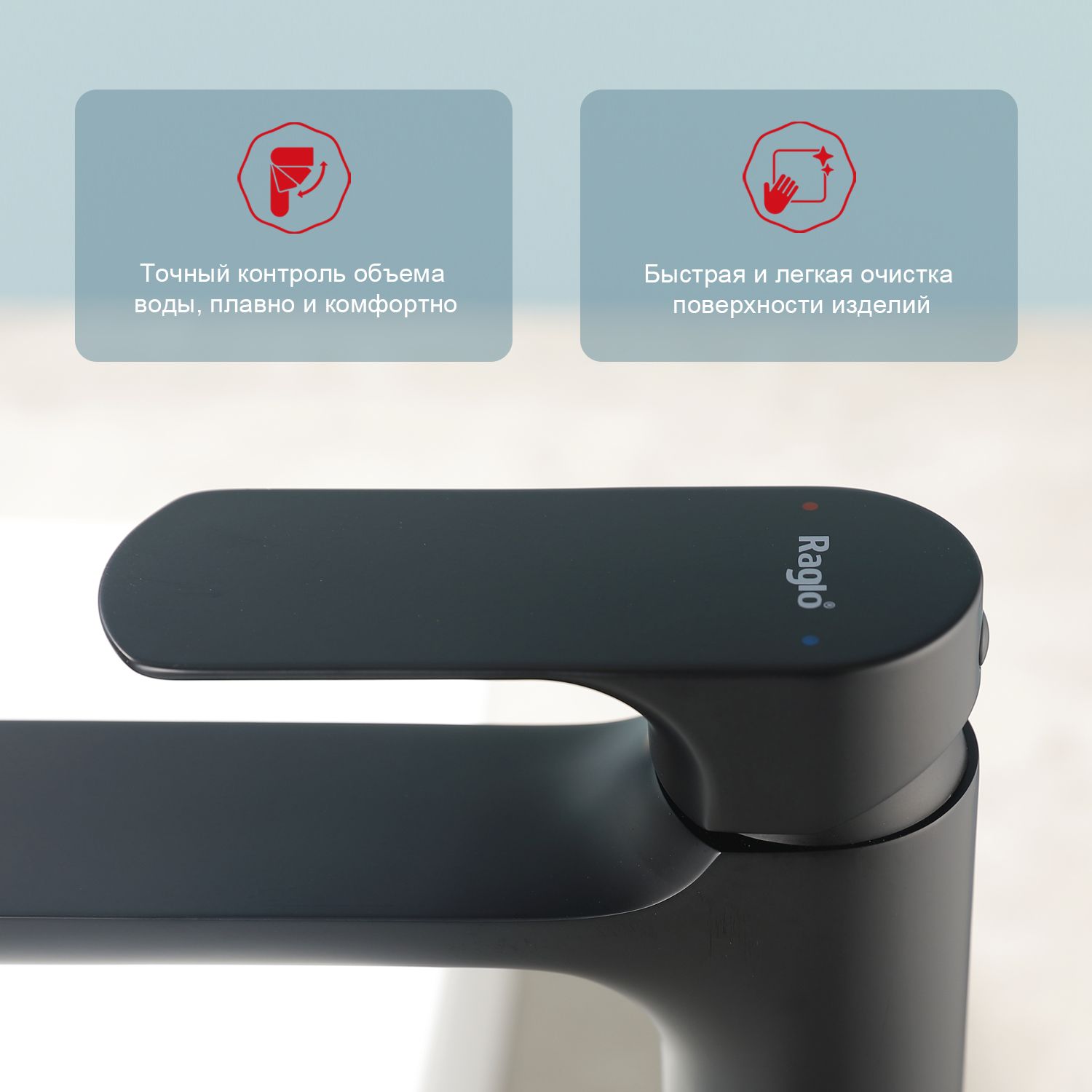 Смеситель для раковины Raglo R03.15.06, черный. Смеситель для раковины RAGLО имеет повышенную прочность корпуса. Соответствует требованиям международного стандарта. Одна рукоять для регулировки воды. Аэратор гарантирует одинаковый поток воды, сеточка рассеивает напор, вода смягчается. Смеситель устанавливается на гайке, нижняя часть смесителя вставляется в отверстие для монтажа и затягивается гайкой для фиксации. Данный смеситель для умывальника имеет надежный стационарный излив, не меняющий своего положении. Смеситель прекрасно смешивает потоки воды, а помимо этого обладает невысоки показателем шумов. Быстрый монтаж. Гарантия производителя 7 лет. Отлично подходит для раковины-чаши. Отдельно стоящий смеситель для накладной раковины.
