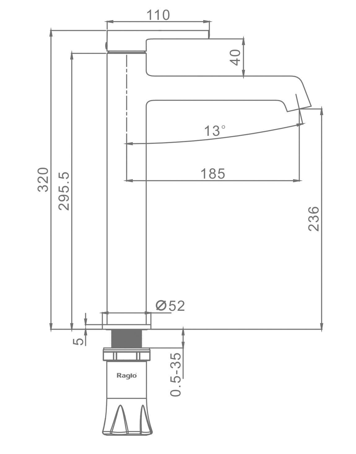 Высокий смеситель для раковины Raglo R20.15.09 графит
