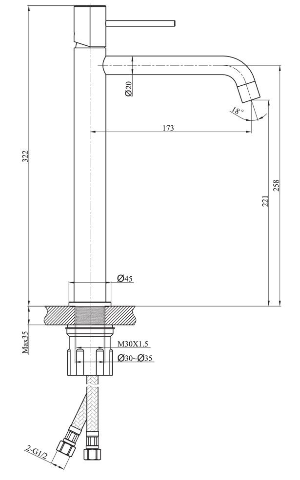 Высокий смеситель для раковины Raiber Graceful RP-002 хром