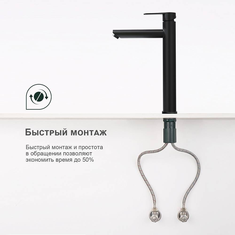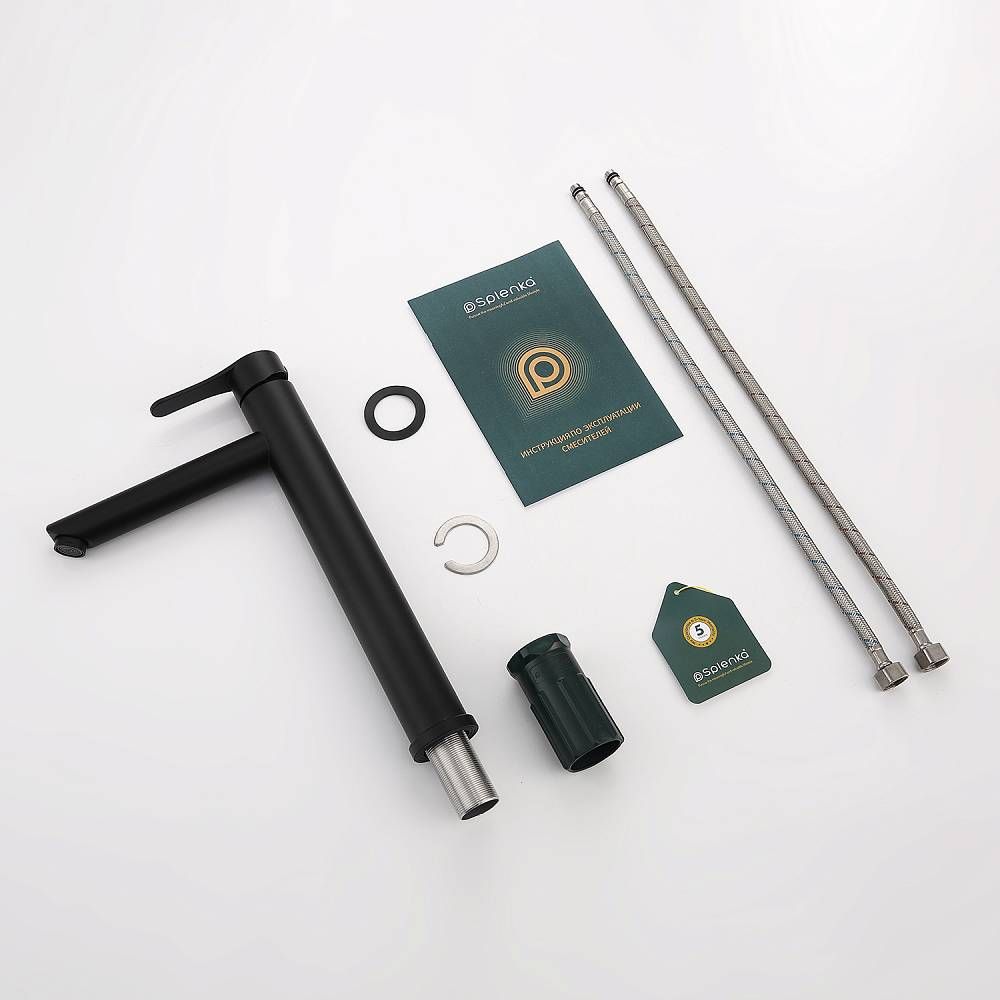 Смеситель для раковины Splenka S223.15.06, черный. Смеситель высокий для раковины нержавеющая сталь, округлой формы. Смеситель с креплением на гайке. Все для монтажа и эксплуатации есть в комплекте.