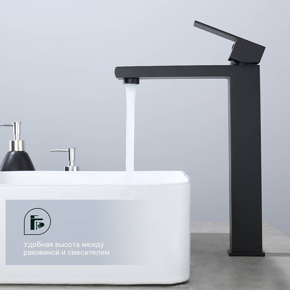 Смеситель для раковины Splenka S224.15.06, черный. Смеситель высокий для раковины нержавеющая сталь, квадратной формы. Смеситель с креплением на гайке. Все для монтажа и эксплуатации есть в комплекте. Гарантия 5 лет.
