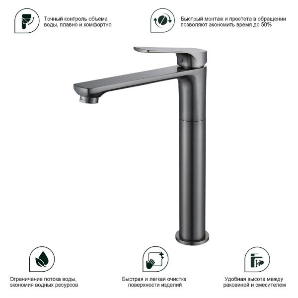 Высокий смеситель для раковины Splenka S30.15.09 графит купить