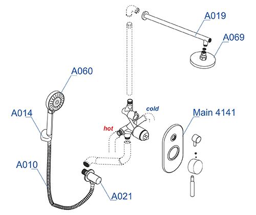 Wasserkraft A16169 Встраиваемый комплект для душа с верхней душевой насадкой и лейкой