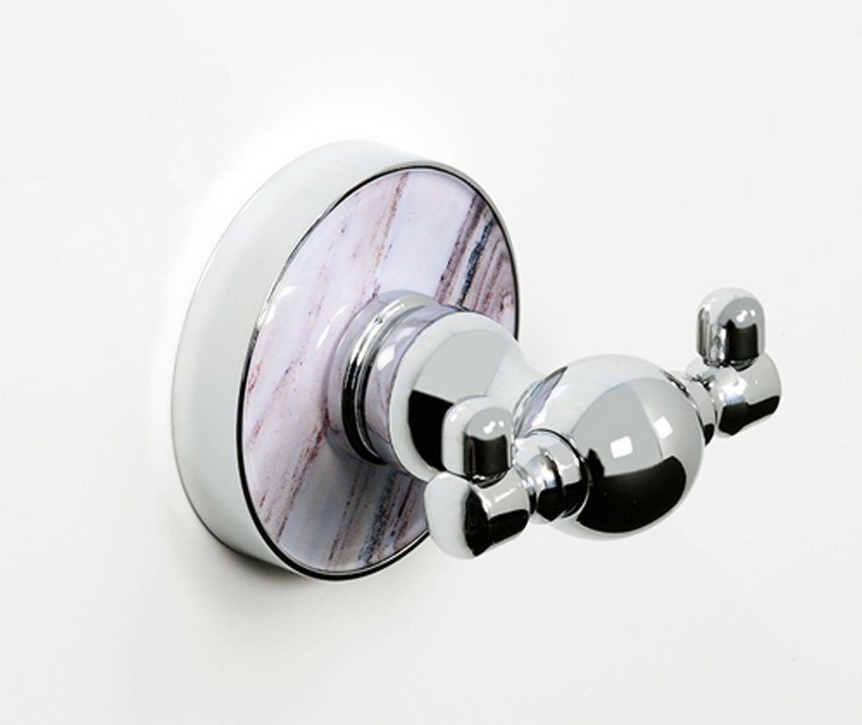 WasserKRAFT Крючок двойной K-8523DРазмер: Ш65 х Г64 х В60 ммМонтаж: настенныйЦвет: хром, акриловая вставка "горный мрамор"Материалы: металл, акрил, хромоникелевое покрытие