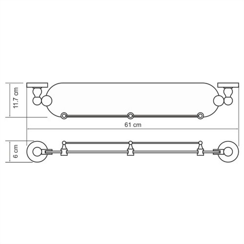 WasserKRAFT Полка стеклянная с бортиком K-7744Размер: Ш610 х Г117 х В60 ммМонтаж: настенныйЦвет держателя: хром, акриловая вставка "декоративный травертин"Полка: закаленное матовое стеклоТолщина закаленного стекла 6 ммМатериалы: металл, акрил, хромоникелевое покрытие, уплотнительные пластиковые кольца, закаленное матовое стекло