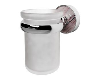 WasserKRAFT Стакан для щеток с держателем K-8528Размер: Ш70 х Г111 х В100 ммМонтаж: настенныйЦвет держателя: хром, акриловая вставка "горный мрамор"Стакан: матовое стеклоМатериалы: металл, акрил, хромоникелевое покрытие, уплотнительные пластиковые кольца, матовое стекло
