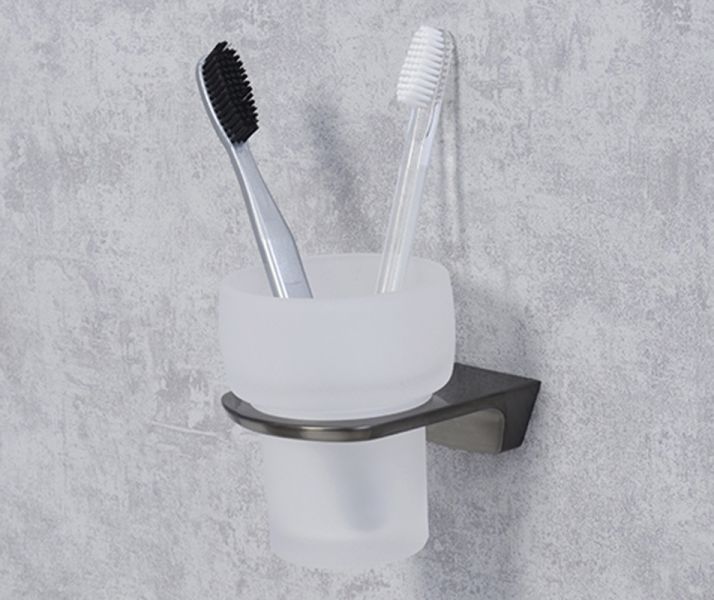 WasserKRAFT Стакан для щеток с держателем K-8928Размер: Ш84 х Г104 х В100 ммМонтаж: настенныйЦвет держателя: нержавеющая стальСтакан: матовое стеклоМатериалы: металл, уплотнительные пластиковые кольца, матовое стеклоPVD-покрытие "оружейная сталь"