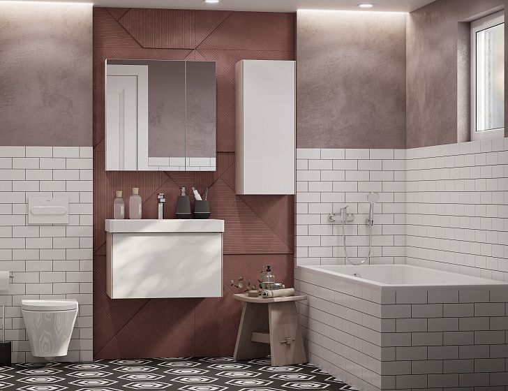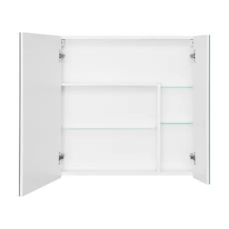 Зеркальный шкафчик АСТИ с несколькими полками в оригинальной конфигурации, позволяющей разместить флаконы с косметическими средствами разной высоты. Зеркальный шкаф подходит также к тумбам из коллекции МАРТИ.