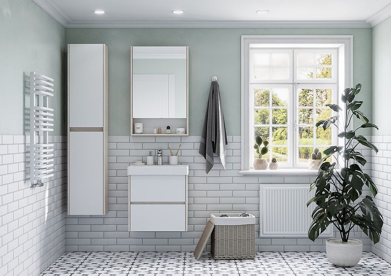 Зеркальный шкаф Акватон Сканди 55см белый/дуб верона 1A252102SDB20 купить