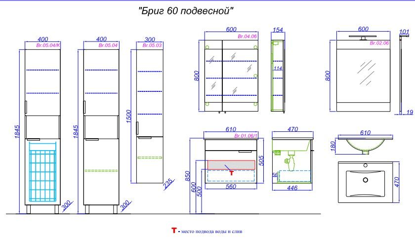Зеркальный шкаф Aqwella Бриг Br.04.06/Gray