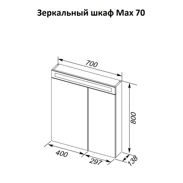 Зеркальный шкаф Dreja.Rus MAX 70 с LED-освещением, белый глянец купить
