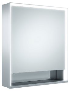 Зеркальный шкаф Keuco Royal Lumos 14301171101 65 смKEUCO Royal Lumos Зеркальный шкаф,1 дверца, петли R, с подсветкой, настенный, с открытой полочкой, 650x735x165 мм, корпус: алюминий серебристый анодированный/белое лакированное стекло