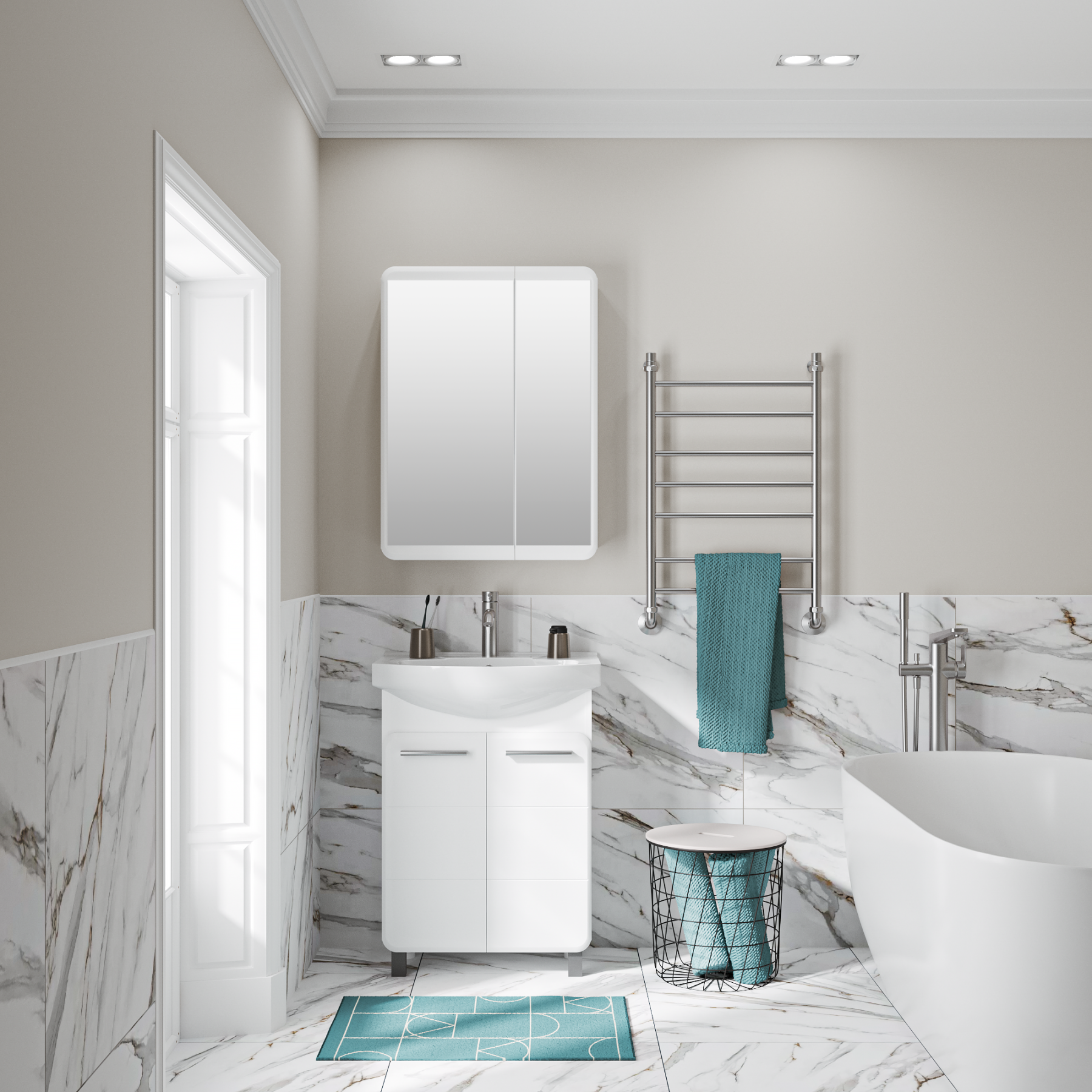 Зеркальный шкаф для ванной ЭРИКА - современный и стильный дизайн в оформлении ванной комнаты. Шкаф зеркало для ванной ЭРИКА, выполненный в белом цвете с глянцевым покрытием, превосходно украсит любой интерьер ванной комнаты. Шкафчик в ванную комнату имеет две распашные дверцы с зеркальными фасадами. Внутри шкафчика четыре встроенные полки. Шкаф для ванной комплектуется петлями со встроенным доводчиком. Шкаф для ванной комнаты ЭРИКА - это эргономичность пространства, удобство использования и вместительность.
