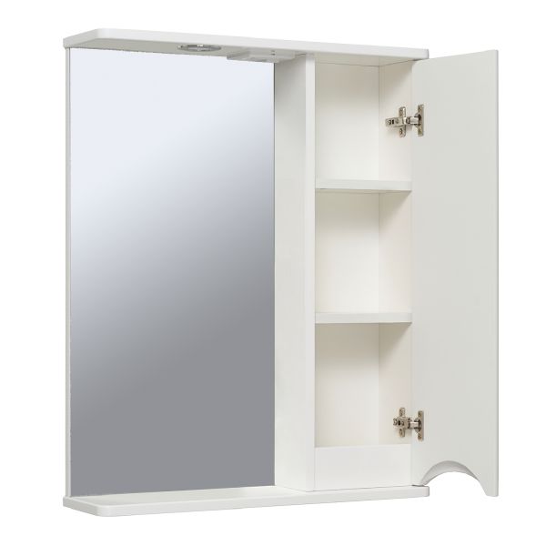 Зеркало настенное со шкафчиком и полкой RUNO АФИНА - безупречное сочетание модных тенденций с классическим оформлением ванной комнаты. Зеркало для ванной со шкафчиком АФИНА представляет собой зеркало настенное (слева) и шкаф в ванную с одной дверцей (справа). В шкафу имеются две внутренние полки. Шкаф для ванной оборудован одним врезным светодиодным светильником 220В и розеткой с выключателем. Шкафчик в ванную комплектуется петлями со встроенным доводчиком и ручкой. Мебель для ванной RUNO - красота и практичность в мелочах! Зеркало с подсветкой , полка для ванной , зеркало с подсветкой в ванную , полка в ванную , полки для ванной , зеркало в ванную с подсветкой , мебель для ванной комнаты