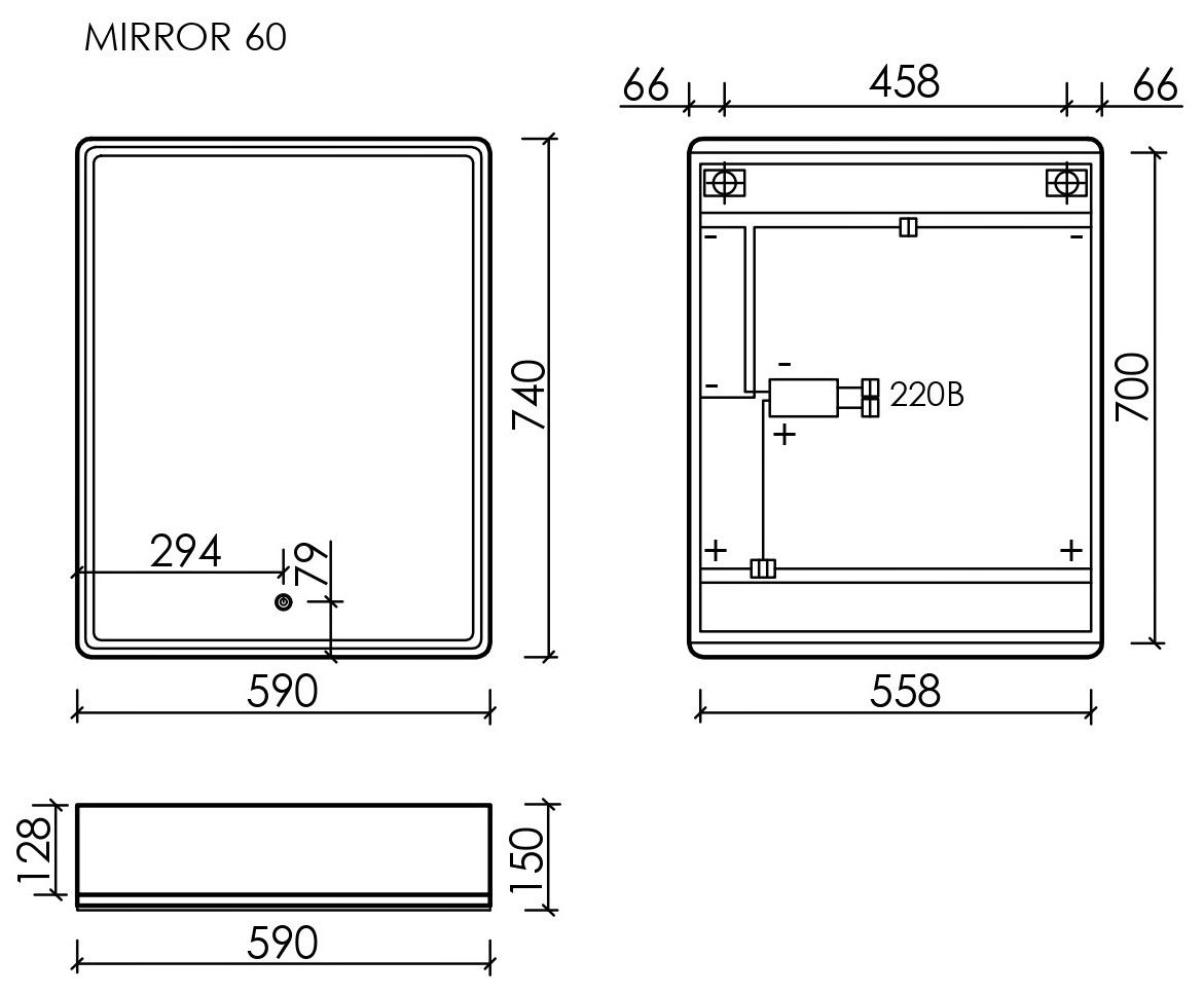 Зеркальный шкаф для ванной комнаты SANCOS Mirror 590x150х740 мм, с LED подсветкой, корпус выполнен из лдсп цвет дуб чарльстон, диммируемое сенсорное управление подсветкой, арт. MI60ECH