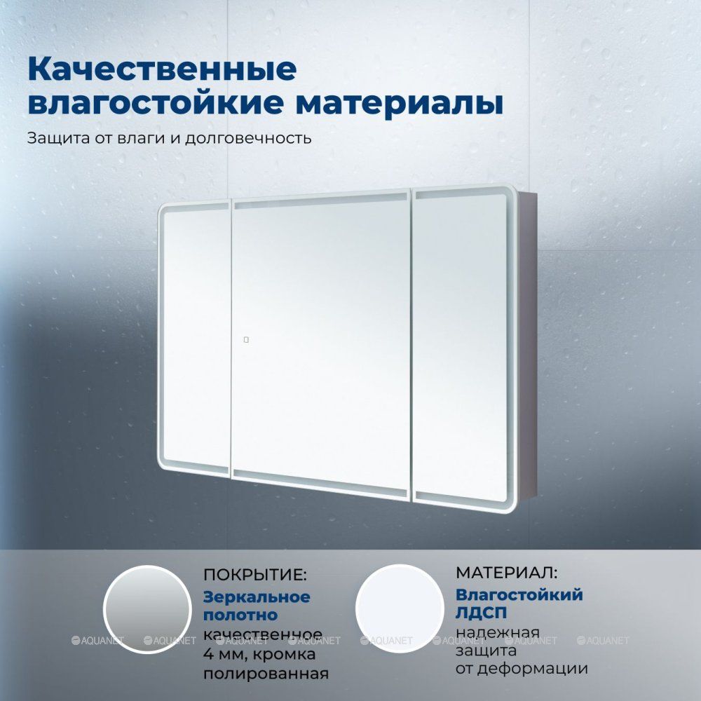 Зеркальный шкаф Aquanet Оптима 120 с LED подсветкой — это умное решение для вашей ванной. Он сочетает элегантный внешний вид, продуманную эргономику и передовые технологии. С ним ваше утро станет ярче, а вечер — комфортнее.