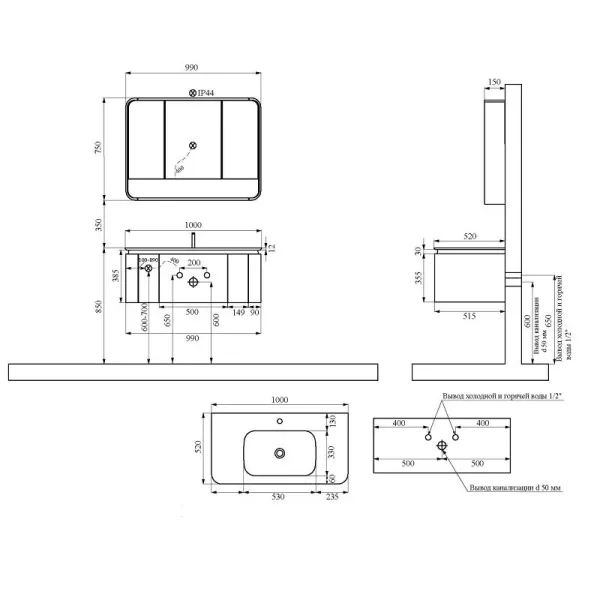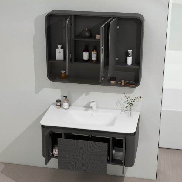 Зеркальный ящик из коллекции U 930  компании Black&White. Корпус изготовлен из влагостойкой девятислойной фанеры и окрашен эмалью, а отсутствие острых углов по периметру пересекается с концепцией основной тумбы. Для хранения косметических принадлежностей предусмотрены три распашных ящика с зеркальными фасадами, а также открытая полочка в ширину всего изделия. Петли для открывания фасадов установлены фирмы UniHopper.Зеркальный ящик U 930– готовое решение для хранения гигиенических принадлежностей и наполнения стилем Вашей ванной комнаты.