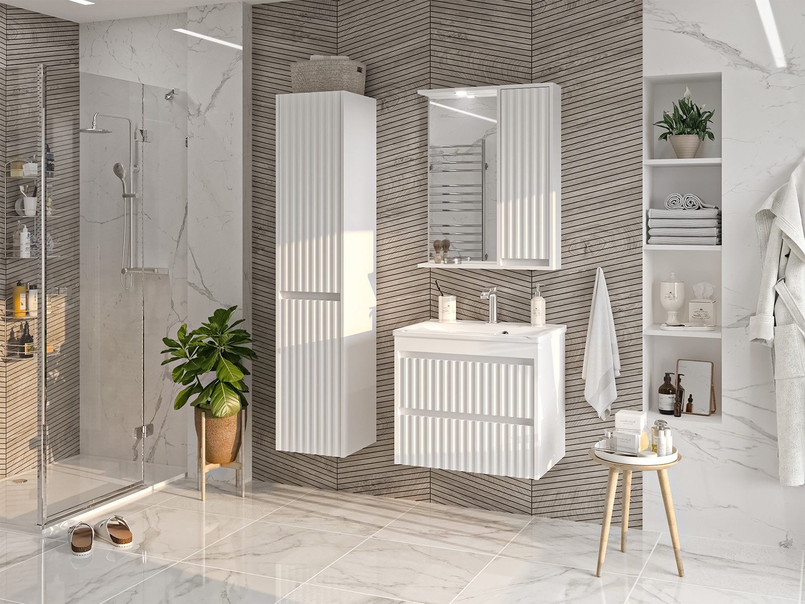 Зеркальный шкаф для ванной комнаты – это стильный акцент, который может преобразить любое пространство. С его элегантными линиями и продуманным дизайном, он идеально вписывается в современный интерьер. Внешняя поверхность шкафа, выполненная из качественных материалов, отражает свет, создавая ощущение простора и уюта.Внутреннее содержание шкафа умело организовано: разнообразные полки и отсеки позволяют удобно разместить все необходимые аксессуары – от косметики до бытовой химии. Зеркало, интегрированное в фасад, визуально расширяет пространство и облегчает утренние рутинные процедуры.Зеркальный шкаф для ванной комнаты – это идеальное сочетание красоты и практичности, которое станет незаменимым помощником в вашем дневном ритме.