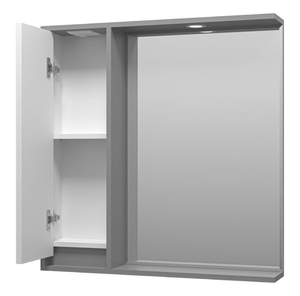 Зеркальный шкаф с подсветкой Brevita Balaton BAL-04080-01-01Л левый 80см белый/серый