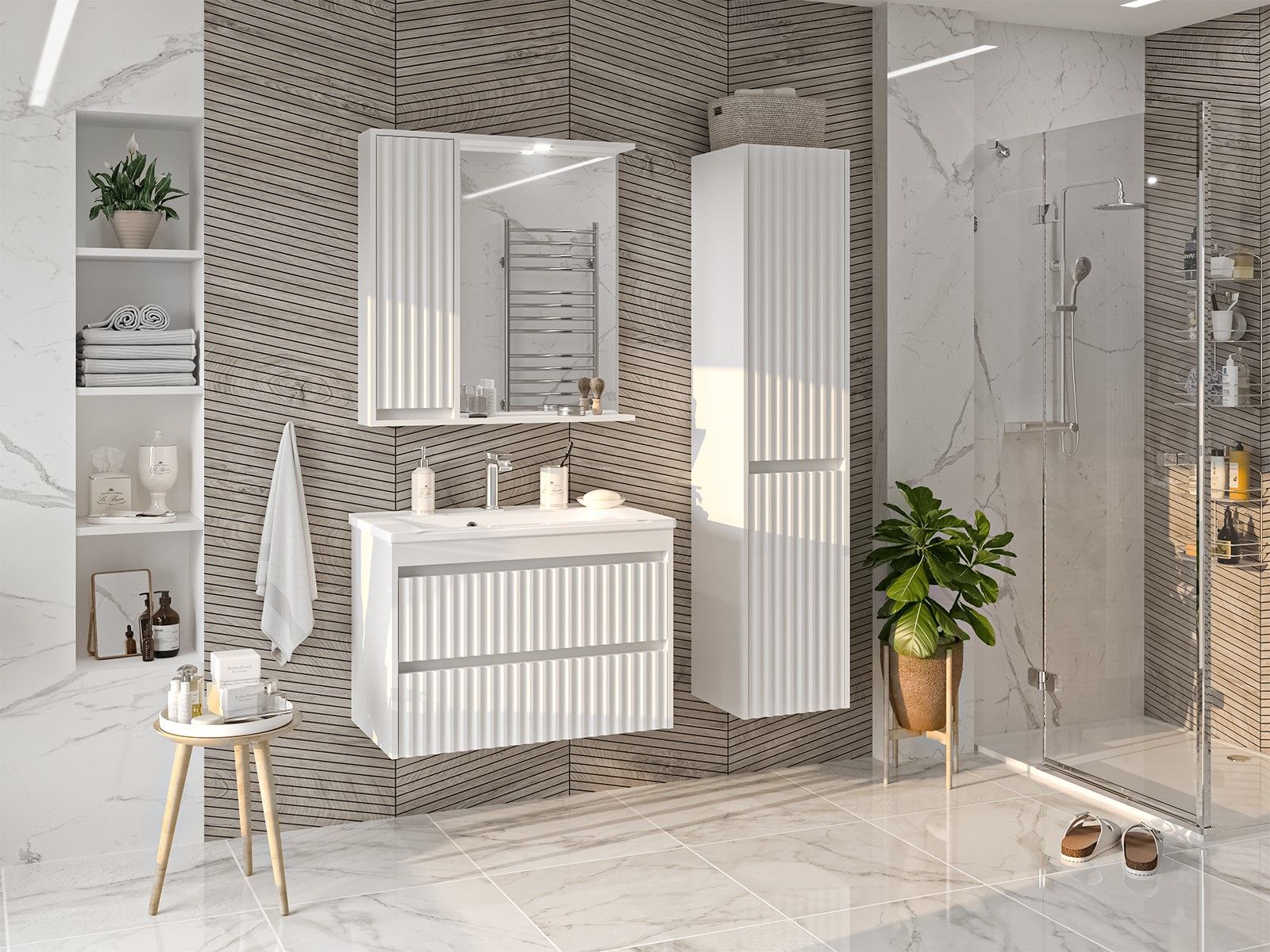Зеркальный шкаф для ванной комнаты – это стильный акцент, который может преобразить любое пространство. С его элегантными линиями и продуманным дизайном, он идеально вписывается в современный интерьер. Внешняя поверхность шкафа, выполненная из качественных материалов, отражает свет, создавая ощущение простора и уюта.Внутреннее содержание шкафа умело организовано: разнообразные полки и отсеки позволяют удобно разместить все необходимые аксессуары – от косметики до бытовой химии. Зеркало, интегрированное в фасад, визуально расширяет пространство и облегчает утренние рутинные процедуры.Зеркальный шкаф для ванной комнаты – это идеальное сочетание красоты и практичности, которое станет незаменимым помощником в вашем дневном ритме.