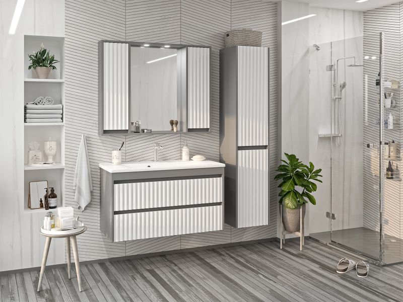 Зеркальный шкаф с подсветкой Brevita Balaton BAL-04100-01-01 100см белый/серый