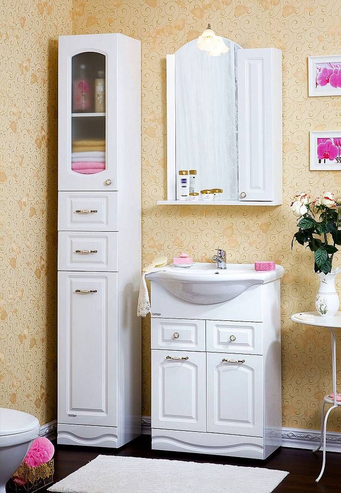 Внутреннее содержание шкафа умело организовано: разнообразные полки и отсеки позволяют удобно разместить все необходимые аксессуары – от косметики до бытовой химии. Зеркало, интегрированное в фасад, визуально расширяет пространство и облегчает утренние рутинные процедуры.