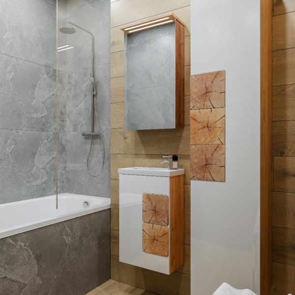 Зеркальный шкаф с подсветкой Бриклаер Форест 4627125414695 40 см дуб золотой/антрацит купить