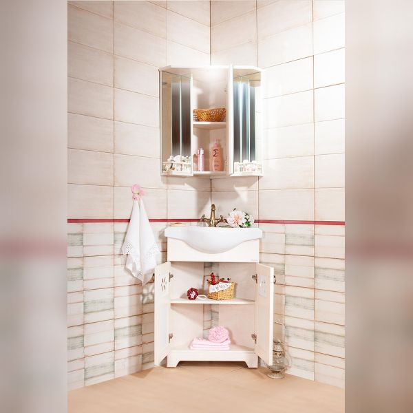 Внутреннее содержание шкафа умело организовано: разнообразные полки и отсеки позволяют удобно разместить все необходимые аксессуары – от косметики до бытовой химии. Зеркало, интегрированное в фасад, визуально расширяет пространство и облегчает утренние рутинные процедуры.