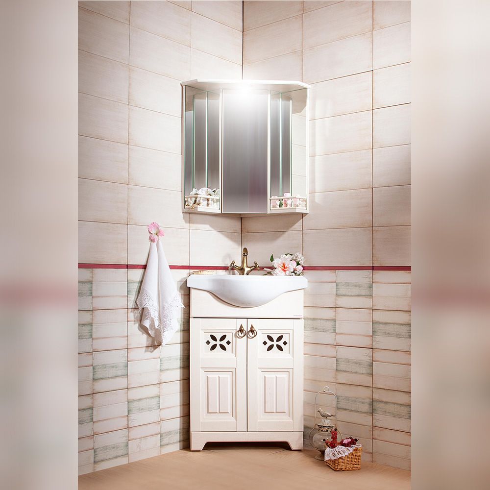 Зеркальный шкаф с подсветкой Бриклаер Кантри 4627125413711 с балюстрадой 70 см бежевый дуб прованс купить