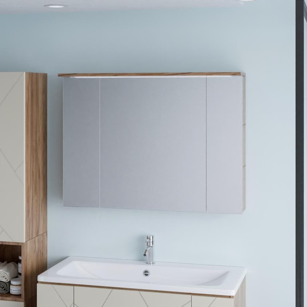 Зеркальный шкаф с подсветкой Бриклаер Кристалл 4627125417214 95 см дуб крафт табачный купить