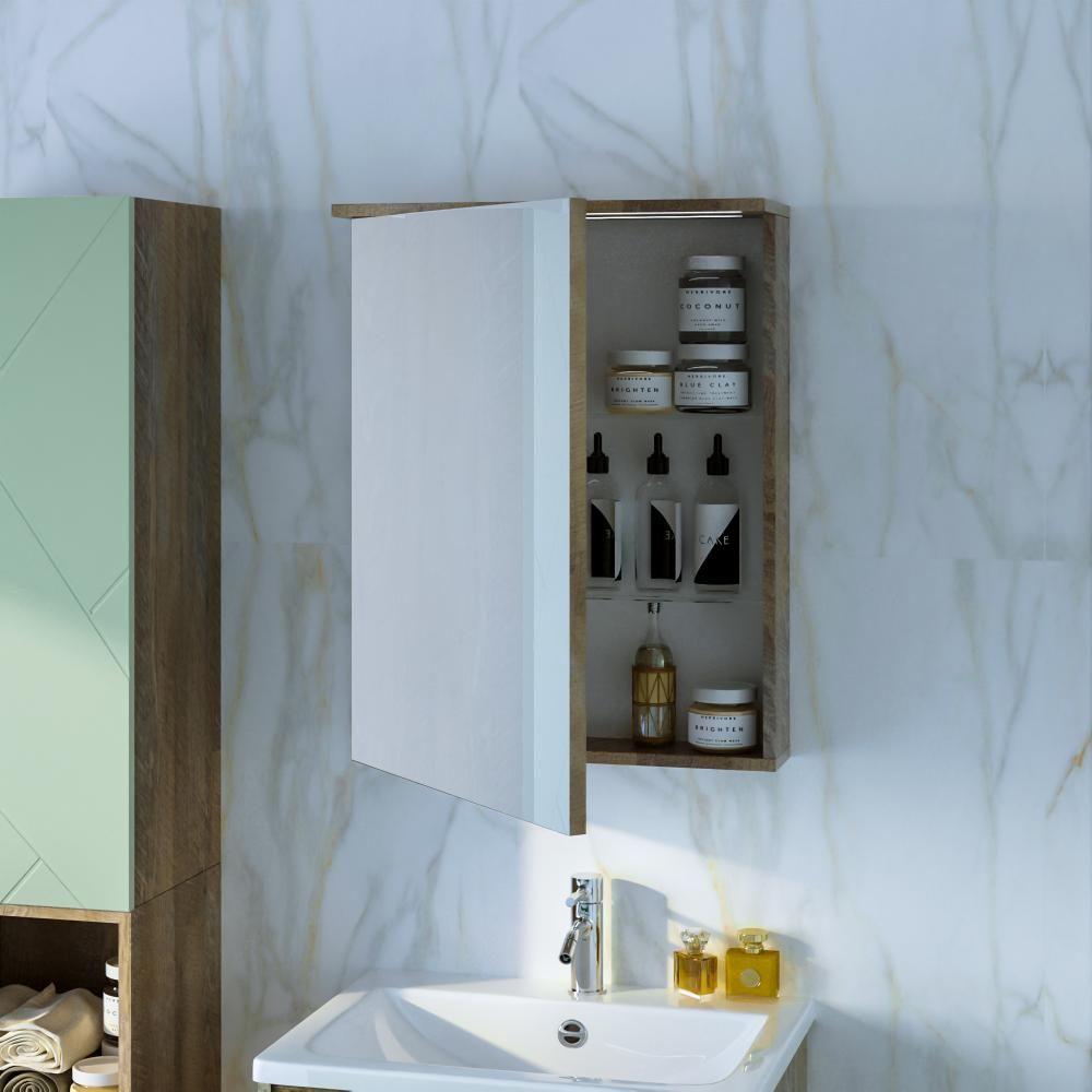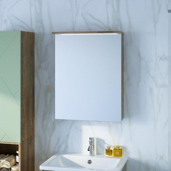 Зеркальный шкаф с подсветкой Бриклаер Кристалл 4627125417221 56 см дуб гранж песочный купить