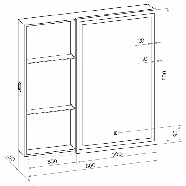 Зеркальный шкаф с подсветкой Misty Аперио 80см правый белый